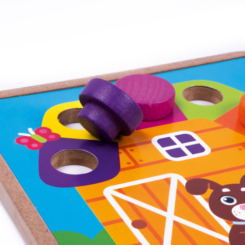 Wspaniała drewniana mozaika będzie nie tylko ekscytującą zabawą dla malucha, ale także przydatnym narzędziem do jego rozwoju. Dzięki niemu dziecko zapozna się z życiem na farmie i nauczy się nazw zwierząt.