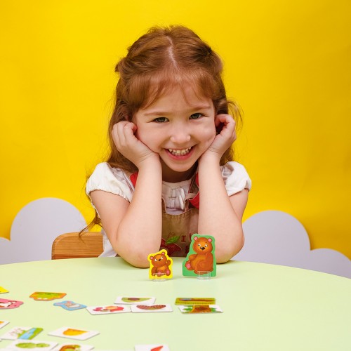 Wraz z maluchem przypatrzcie się zwierzętom i je pogrupujcie. Kto mieszka w lesie? A kto na farmie? Następnie pośród kart znajdźcie ich ulubione smakołyki. Kto je marchewkę? A kto siano? Połączcie karty ze zwierzętami i fiszki z ich przysmakami.