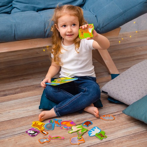 Zestaw miękkich magnesów zapozna dziecko z różnymi zwierzętami. Uczycie się ich nazw, dowiadujcie się, co one jedzą i jak mówią, zapamiętywajcie ich właściwości.
