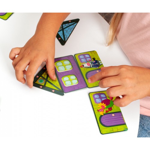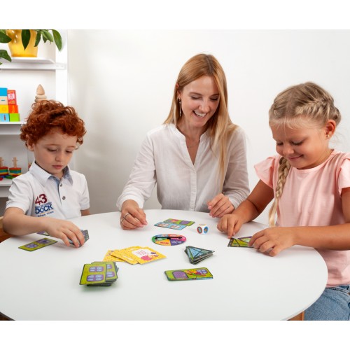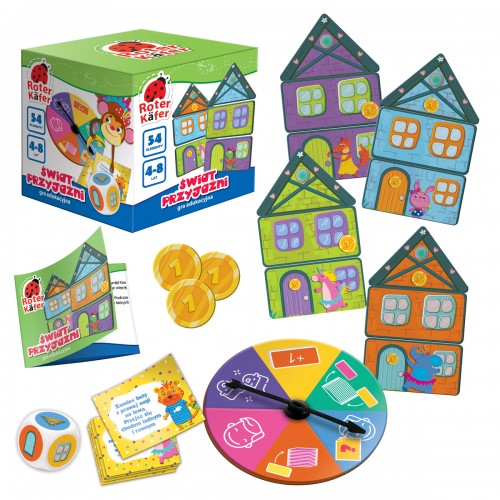 Gra edukacyjna Świat przyjaźni sprawi, że zadbamy o zwierzątka w mieście. Pomożemy zwierzakom zbudować ich własne nowe domki i jednocześnie się pobawimy! Gra przeznaczona jest dla 2-4 osób w wieku od 4 do 8 lat. Zadaniem uczestnika gry jest zbudowanie jak największej liczby domków składających się z 3 poziomów: parter, piętro i poddasze.