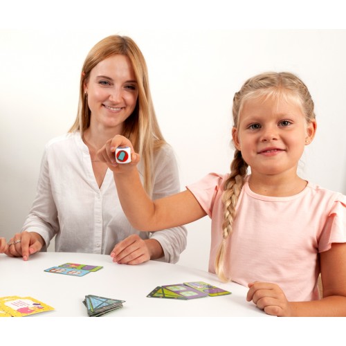 W zestawie | 14 fiszek bonusowych, 2 kostki do gry, 36 fiszek |
