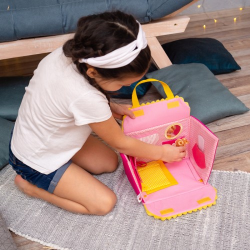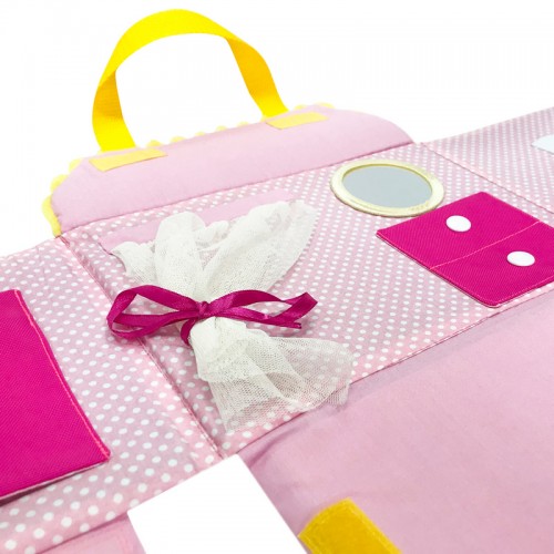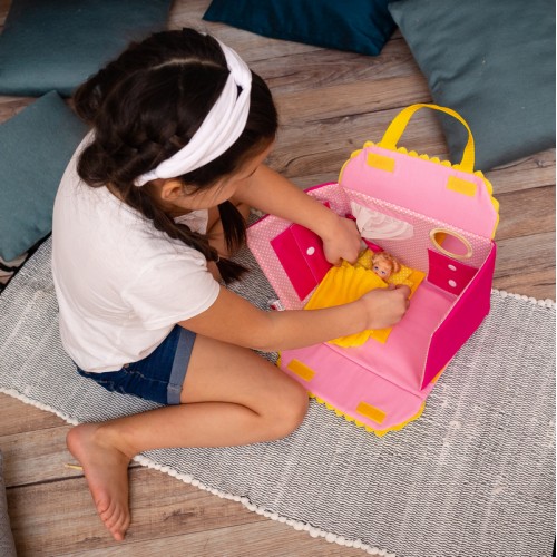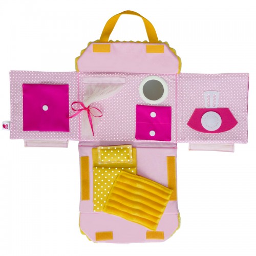 W trakcie zabawy dziecko położy ulubioną lalkę do spania, powita z nią nowy dzień, zje razem z nią śniadanie w kuchni i pomoże wybrać się na spacer. A także nauczy się operować elementami wnętrza, otwierać i zamykać okienka na rzepy, wiązać węzełki, rozwinie fantazję i małą motorykę.