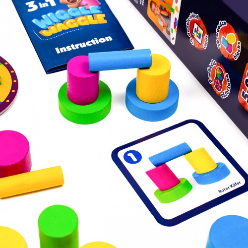 W zestawie | 2 koła fortuny, 12 kart z zadaniami, 30 drewnianych cylindrów, instrukcję |