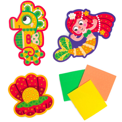 Zestaw kreatywny z miękką mozaiką "Mała Syrenka". Udekoruj obrazy uroczych mieszkańców miękkimi elementami mozaiki. Stwórz swój własny, żywy świat morski.